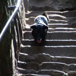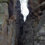 Hola die Wald Fee kann ich da nur sagen. Das war eine buchstäbliche schweißtreibende teuflische Tour. Uns Allen taten am Folgetag sämtliche Knochen weh, den wir starteten bei einem Höhenpunkt von 400 Metern und wanderten bergab auf 260 Meter. Soweit so gut, das Ding hieß aber „die teuflische 8“ und so ging es dann 140 Meter im Wechsel Bergauf und Bergab, auf teilweisen schmalen Gesteinspfaden. Frauchen hat mich von der Leine gelassen, denn die musste sich ständig irgendwo festhalten (sie hat es nicht so mit unregelmäßigen Steintreppen in engen Felswänden und enge Felsendurchgängen). Hört sich gefährlicher an als es ist, aber man sollte unbedingt Trittsicher sein. Ich bin ja von Sternzeichen Bergziege mit Aszendent Seehund und daher war diese Felsenwelt mein Ding.