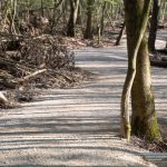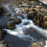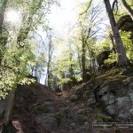 Der Eindruck war überwältigend. Wir wanderten Richtung „Wasserfälle Irrel“… na ja unter Wasserfall stelle ich mir was anderes vor, das waren eher „Möchtegern“ Stromschnellen, aber hübsch anzusehen. Bis dahin waren auch eine Menge Wanderer, jeden Alters Unterwegs. Die waren wohl Schlauer und hatten sich die beiden kürzeren Wanderungen durch die Teufelsschlucht von 1 km bis 3km ausgesucht. Wir folgten weiterhin der gelben 8 und wanderten einen sehr schmalen moorastigen Pfad an einem Bergquell entlang wieder nach oben. An den ganzen Felswänden, über Treppen und Stege, vorbei wieder Gefühlte 1000 Meter nach unten, um zwischen Felsen Platen wieder nach oben zu kommen.