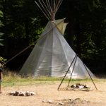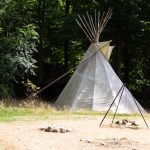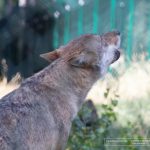 Die Tiere waren aufgeweckt und neugierig und wussten, das es was leckeres gabt, wenn man mit der Tüte raschelte (pelletiertes Wildfutter gab es an der Kasse und konnte jederzeit im Park aufgefüllt werden). Etwa in der Mitte des Parks waren Wigwams aufgebaut und hier konnte man sich zu einer Pause niederlassen. Unweit davon, wurden wir von Wölfen beobachtet.